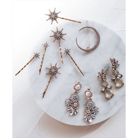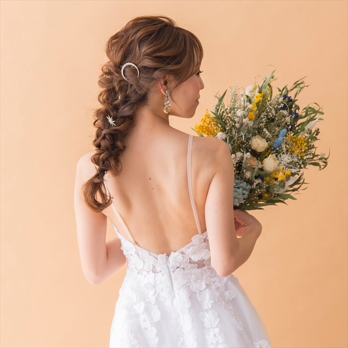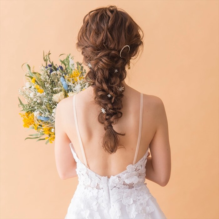 | 商品説明 | 【ブライダルアクセサリーの特徴】花嫁様に大人気のスターモチーフのアクセサリー。星屑のようなデザインが可愛いヘアピンが入荷。さりげなく輝きを髪に散りばめて。大振りのモチーフのヘアピン3本と小さめモチーフのヘアピン3本、月モチーフのヘアピン1本のセット。7本セットでお好きにコーディネート可能【このブライダルアクセサリーに合うヘアスタイル】ホワイトのウェディングドレスにもなじむ、アンティーク加工を施したゴールドのヘアピンは、まとめ髪に散らしたり、ゆるく巻いておろしたヘアのサイドにつけたりとアレンジ自在。写真のようにブライダルヘアの定番編みおろしとは相性抜群!【このブライダルアクセサリーに合うウェディングシーン】ナチュラルウェディングにぴったりなアンティークゴールドのタイプブライダルシーン以外にも、おでかけなどにも気軽につかっていただけるデザイン【花嫁様の感想をご紹介】クラシックなドレスを選んだので、ブライダルアクセサリーもアンティーク調のモノが合うと思い、選びました!いろいろな箇所に散らせたので、あとから見た写真でもどの角度でもキラキラとアイテムが写っていてよかった! |
