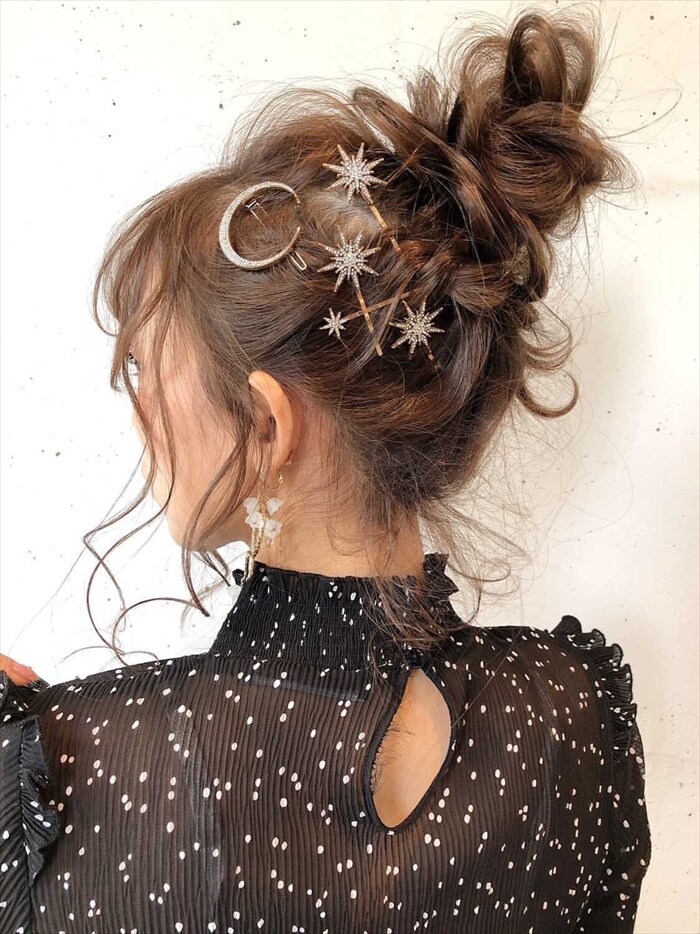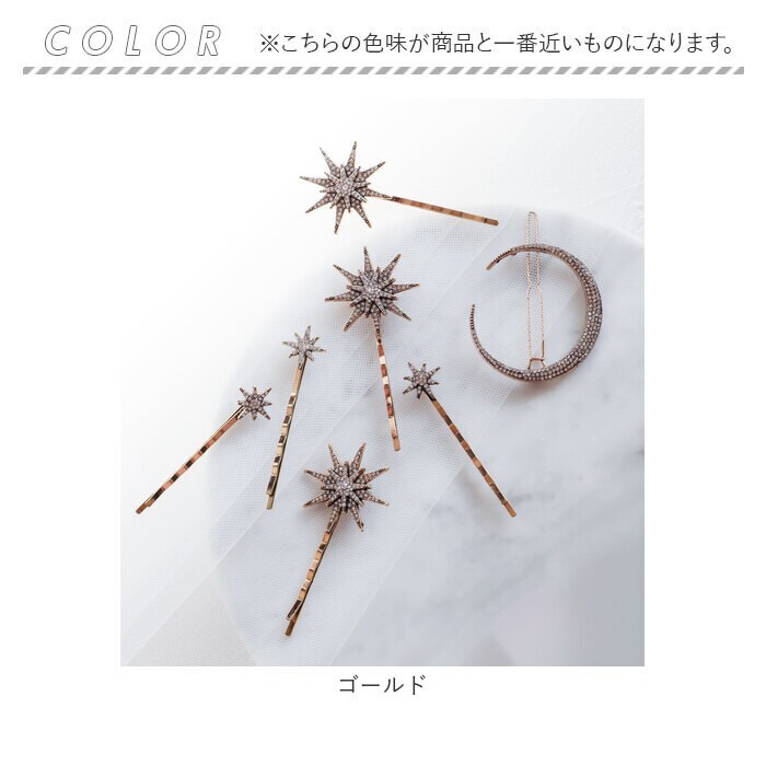 | サイズ | 大 モチーフ 3cm×3cm, ピン全長 6.5cm 小:モチーフ 1.5cm×1.5cm ピン全長 6cm 月モチーフ 4.5cm×4.5cm ヘアピン7本セット |