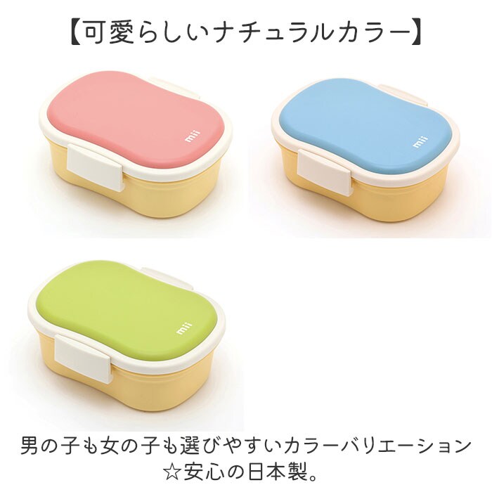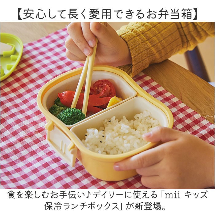 商品説明【安心して長く愛用できるお弁当箱】食を楽しむお手伝い♪デイリーに使える「mii キッズ保冷ランチボックス」が新登場。【買い替え不要で成長をサポート】・2つの中子を自由に組み合わせOK。お子さまの成長や用途に合わせて長く使えるのが嬉しい!(※1)中子2個:約280ml、中子1個:約360ml、中子なし:約430ml。【高い保冷効果でオールシーズン活躍】フタに保冷剤を内蔵!冷凍庫で一晩凍らせてフタをするだけ。繰り返し使えてエコ。(※2)当店別ページで販売中の保冷ランチポーチ(商品コード:miilunchpouch)とセット使いすることで、より効果的に保冷可能です。【カチッとワンタッチで開閉】フタはお子さま1人でも開け閉めしやすい、シンプルな2点ロック式。【特殊加工でお手入れラクラク】ケース本体の内側に汚れがつきにくく、ラクに洗える「ラクシボ加工」済み。【可愛らしいナチュラルカラー】男の子も女の子も選びやすいカラーバリエーション☆安心の日本製。