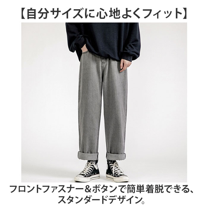 | 商品説明 | 【カジュアルコーデの定番アイテム】ラフなスタイルを演出。ストレスなくおしゃれを楽しめるメンズ用「ワイドデニムパンツ」。【流行りを気にせず長く愛用◎】どんなアイテムとも相性の良いデニムパンツ。トレンドに左右されず、抜群の着回し力。【自分サイズに心地よくフィット】フロントファスナー&ボタンで簡単着脱できる、スタンダードデザイン。【ワイド&ストレートデザイン】すとんと落ちてボディラインを拾いにくいフォルム。程よくゆるい、ルーズなスタイルに。【足元はお好みでアレンジも自在】そのままおろしても、裾のロールアップもOK。その日の気分に合わせてスタイルチェンジ。【スマホなどが入るポケット】前後左右にポケットを配置。スマホや薄手のハンカチなどをIN。【お気に入りを選べるカラー】着こなしやすく、トップスを選ばないカラーをラインナップ。 |
