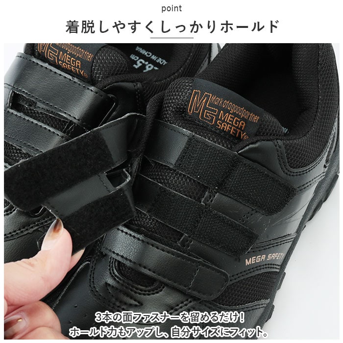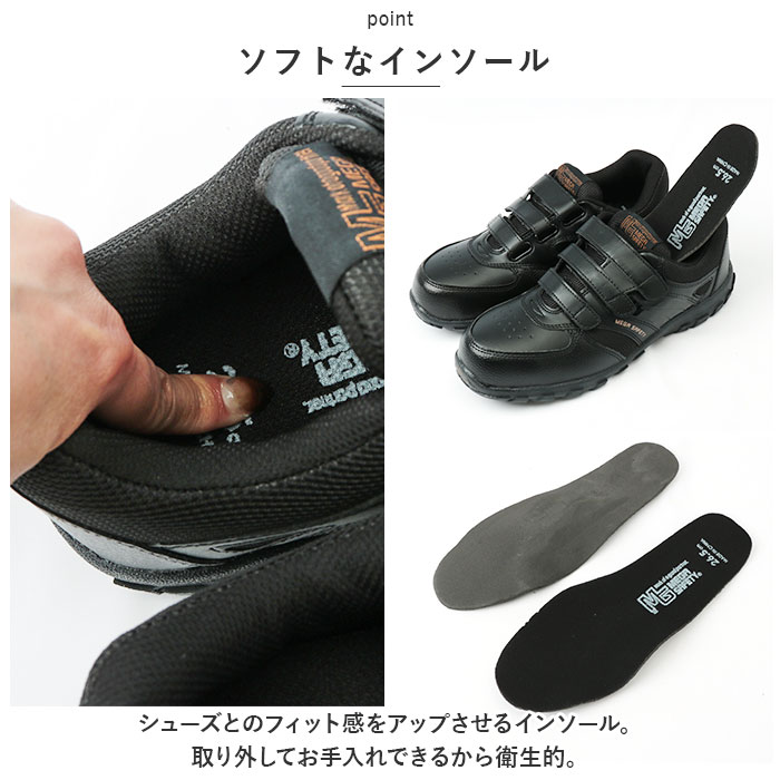 | 商品説明 | 作業時も安心・安全◎スニーカーのような見た目で手軽に使える「安全靴」が登場。【動きやすさを重視】足首が固定されず、自由に身動きしやすいローカットタイプ。日本人の足幅に合わせた設計で、快適な履き心地。【安心の鋼製先芯入り】つま先部分にJIS規格S級相当の鋼先芯が装備されているから、足先をしっかりガード。作業時も安心。【着脱しやすくしっかりホールド】・3本の面ファスナーを留めるだけ!ホールド力もアップし、自分サイズにフィット。【ソフトなインソール】シューズとのフィット感をアップさせるインソール。取り外してお手入れできるから衛生的。【歩きやすさが向上】屈曲性があり、つま先が上を向いた形状。つまづきにくく、蹴り上げやすい!【安定感のあるソール】底面に凹凸を施した、グリップ力のあるソール。濡れた路面でも滑りにくい仕様。【選べるカラー】年代問わず履きやすいカラーをラインナップ。工事現場や作業場などで大活躍。 |