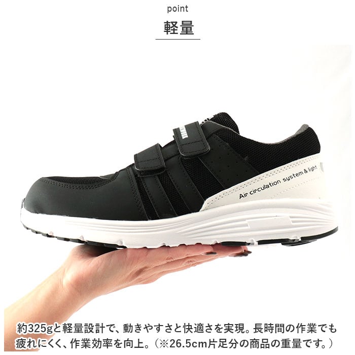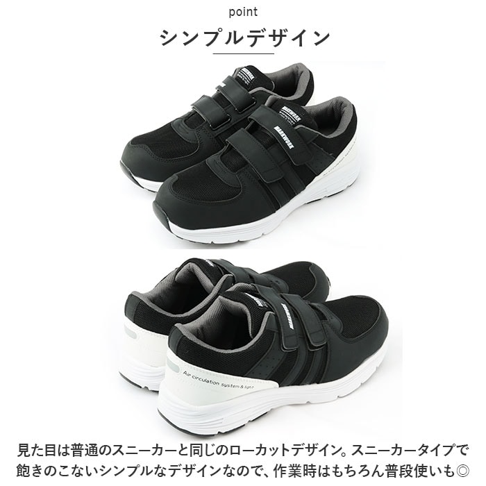| 商品説明 | 見た目は普通のスニーカー。飽きのこないシンプルなデザインで普段使いもOKな安全靴の登場。【シンプルデザイン】見た目は普通のスニーカーと同じのローカットデザイン。スニーカータイプで飽きのこないシンプルなデザインなので、作業時はもちろん普段使いもOK!【耐久性のあるつま先】つま先はJIS規格S級相当の保護先芯入りで安全性に優れ、厳しい環境も耐え抜くアイテム。【軽量】約325gと軽量設計で、動きやすさと快適さを実現。長時間の作業でも疲れにくく、作業効率を向上。(※26.5cm片足分の商品の重量です。)【通気性がよい】アッパーのメッシュ加工で、通気性がよく足ムレを防止。高温になる真夏の作業時も足元快適!【履きやすい】面ファスナーでしっかり固定してくれるので足にフィット。靴紐の結び直しが不要なので履きやすい!【ガラスや釘対策】ガラスや釘を踏んでもケガをしにくい設計。アウトソールが頑丈で刺し物に対する保護力が高い。安全に作業ができる環境を提供。【トゥアップ設計】シューズのつま先を上げることで引っかかりにくく、転倒しにくい設計。【滑りにくい】靴底には、耐油性と耐摩耗性に優れた素材を使用。滑りにくさに特化し、安全性をより強化!【反射仕様】かかと部分は光を反射する仕様。夜間や雨の日の作業も安心してできる◎【クッション性◎】ソールは衝撃を吸収し、足の負担を軽減。クッション性に優れ歩きやすい◎【外せるインソール】インソール部分は取り外し可能。手洗いができ清潔に保てるのも嬉しいポイント。 |