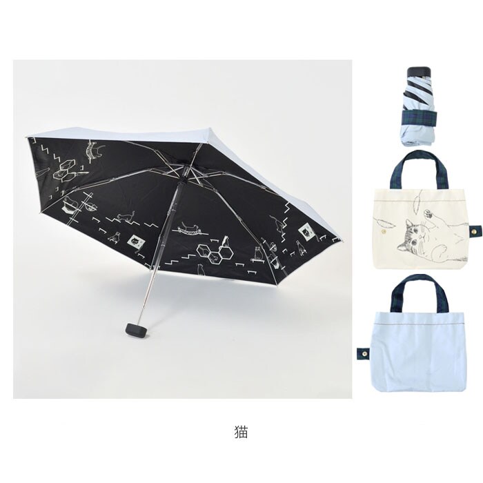 黒コーティング晴雨兼用ミニ 47cm【猫】