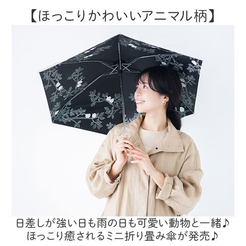 | 商品説明 | 【ほっこりかわいいアニマル柄】日差しが強い日も雨の日も可愛い動物と一緒♪ほっこり癒されるミニ折り畳み傘が発売♪【開くと可愛い動物が登場】内生地に動物が描かれたプリント。可愛い動物たちの姿を360度楽しめる!【表地はシンプルな無地仕様】表地はワンカラー仕様。アイボリーカラーでどなたでも使いやすい見た目◎【強い日差しをしっかりカット】内側のブラックコーティングでしっかり日差しをカット!【日焼けしにくい】UVカット99%以上、UPF50プラス機能もあり紫外線対策に最適☆【遮熱効果で熱中症予防に】遮熱効果もあり、プライベートな木陰空間を作り熱中症予防としても使える。【雨の日も安心】撥水・防水加工も施しており雨粒もしっかり弾く♪突然の強い雨の時も安心。【折る手間なくスムーズに手開き】手開き式で傘骨をポキポキ折る手間なく、スムーズに開閉できる!【手に馴染んで持ちやすい】ハンドルは手に馴染んで持ちやすいスクエア型。マット調で滑りにくさもアリ◎【サッとまとまる面ファスナー】傘生地をまとめるバンドは、面ファスナー式。たたむ時も手間取らず、ひとまとめ。【カバンを選ばない】折り畳み時は小さくカバンを選ばないサイズ感◎ポシェットやサコッシュにもIN。【可愛い専用収納袋付き】傘と同柄の収納袋付き。スナップボタンを開けばトート型になり使用後畳まずに収納OK! |