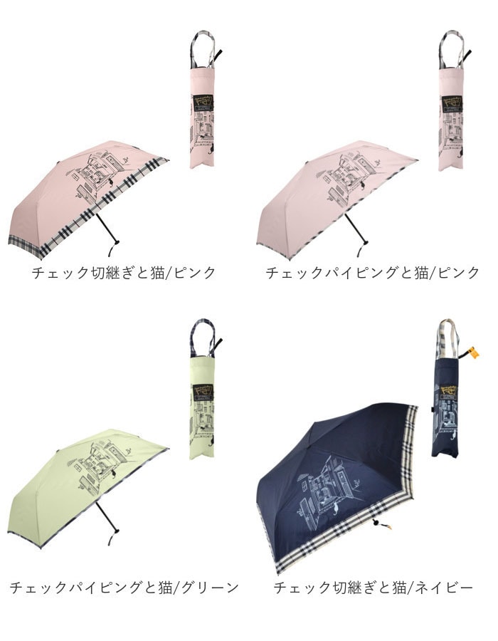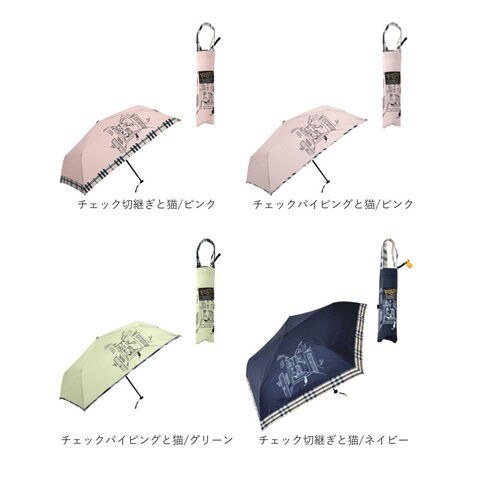 軽量コンパクトタイプミニ 50cm【チェックパイピングと猫/ピンク】