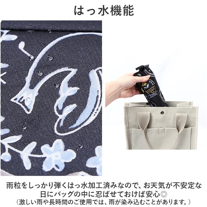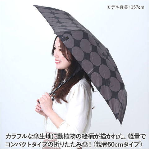 | 商品説明 | カラフルな傘生地に動植物の絵柄が描かれた、軽量でコンパクトタイプの折りたたみ傘!(親骨50cmタイプ)【丈夫なグラスファイバー製】親骨のパーツに、強度と柔軟性に優れたグラスファイバーを採用。軽量でしなやかな素材なので、風の強い日だって安心。【安全カバー付き】開閉時に指先や爪を挟むのを防止する安全カバー付きで、ボタンを押して持ち上げると自然と傘生地が開く設計。ネイルアートを施した指でも安心して開閉可能。【軽量コンパクト】重量は一般的なスマホよりも軽く、収納袋と合わせても約134gと超軽量。【5本骨タイプ】傘骨は、スリムに折りたためる5本骨仕様。小さめショルダーバッグにもすっぽりと収納。【面ファスナー式】傘生地を留めるバンドは、サッとまとめやすい面ファスナー式。【トートタイプの収納袋】傘生地と同柄の収納袋は持ち手が付いたトートタイプ。大きめサイズできちんとたたまなくても濡れた傘をサッと収納でき、持ち運びにも便利。【はっ水機能】雨粒をしっかり弾くはっ水加工済みなので、お天気が不安定な日にバッグの中に忍ばせておけば安心◎(激しい雨や長時間のご使用では、雨が染み込むことがあります。) |