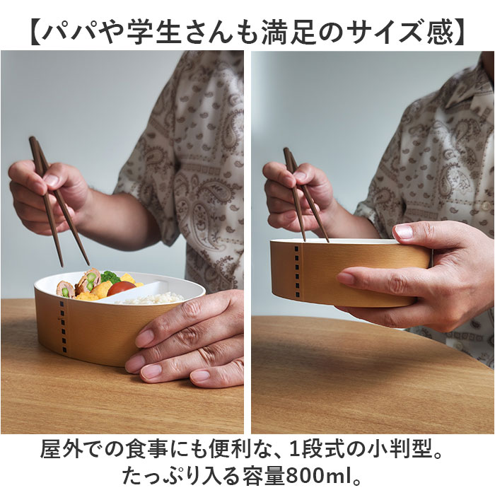 | 商品説明 | 【毎日のランチタイムをもっと豊かに】使い勝手が良く、デイリーに活躍。仕切付の「わっぱ小判一段ランチBOX大」が新登場。【和の風合いを感じるデザイン】木目調のベーシックな仕上がり。温かみのあるカラーで、おかずが美味しく映える☆【パパや学生さんも満足のサイズ感】屋外での食事にも便利な、1段式の小判型。たっぷり入る容量800ml。【仕切りで盛り付けをキープ】おかずが片寄りにくい仕切り付き。ごはんにおかずの色や味が移るのを防止。【レンジ対応!熱々ごはんが復活】中蓋を外して、電子レンジでの温めが可能。オフィスでも温かいランチを楽しめる!【食洗機が使えてお手入れラクラク】中蓋を除いて、食洗機の使用OK。お手入れしやすく、忙しい毎日の味方◎【しっかりホールドして汁漏れガード】ランチボックスをまとめるバンドが付属。中蓋とセットで汁漏れを防いで、持ち運びラクラク。【飽きが来ず長く愛用できるアイテム】年代問わず使いやすい、ナチュラルでおしゃれなお弁当箱。安心の日本製。 |