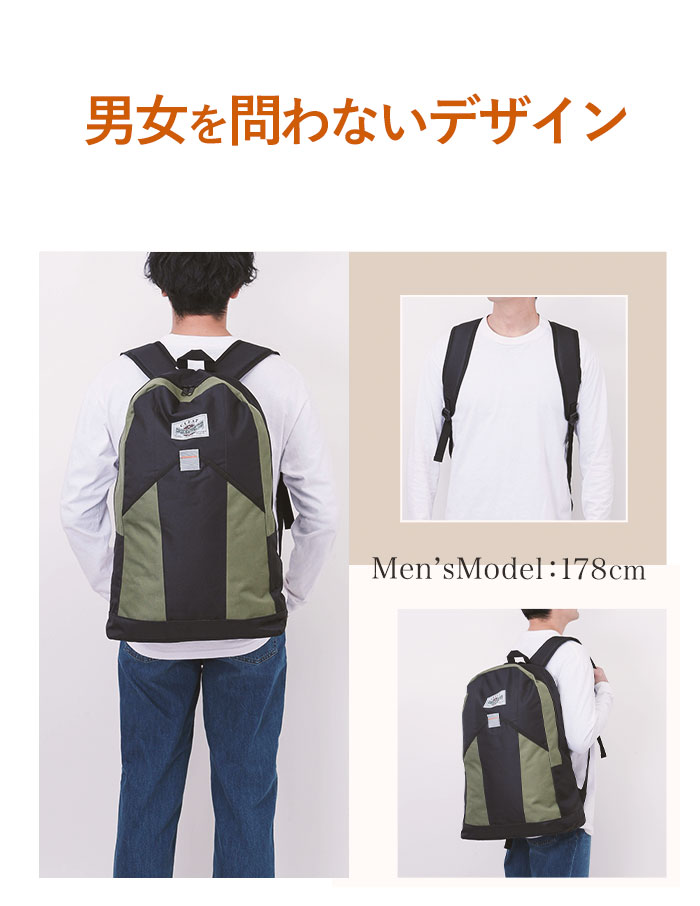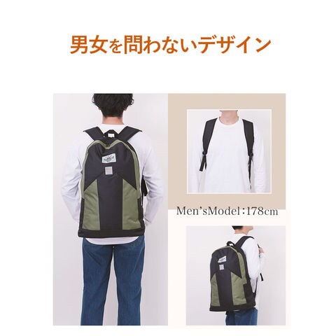 | 商品説明 | 縦に長い流線形のシンプルなフォルム、2色のカラーを切り替えたデザイン(※)が印象的な大容量リュックサック。フロントには小物の出し入れがカンタンなマジックテープ式のポケット付き。深さが十分に取られており、スマートフォンや長財布、ガイドブックなど、サッと取り出したいものをたくさん収納できる!メイン収納開口部はダブルファスナー式で、側面まで大きく開く!着替えもたっぷり入る大容量で、一泊二日程度の小旅行や、アウトドアイベントにも大活躍。メイン収納部は、A3サイズの書類も折らずにすっぽりと収納することが可能!背面側の生地にはクッション材が使用されているので、すき間のないように小物を収納すれば、背面側にノートPCやタブレット端末を配置して安心して持ち運びが可能。(ノートPC用専用ポケットはありません)ショルダーベルトは個性的な曲線を描いたフォルムで、しっかり肩にフィット。ショルダーベルト裏にはクッション材入りで、小旅行など長時間背負う際にも、疲れにくいのが嬉しい。※2色のカラーを切り替えたデザイン…ブラックのみ、黒色一色の単一カラーです。 |