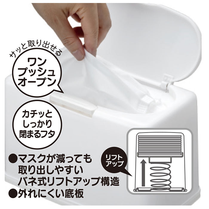 | 商品説明 | 花粉症の季節や風邪の感染対策に大切なマスクを可愛く収納できる!キュートなキャラクター・抗菌マスクストッカー♪ストッカーのフタは、ワンプッシュでラクラクオープン!マスクがサッと取り出せて、お出かけスムーズ♪普通サイズの不織布マスクなら約50枚、たっぷり収納可能。(※マスクの仕様、サイズによっては収納できない場合もございます。)ストッカー底部分には、マスクが残り少なくなっても取り出しやすい「バネ式リフトアップ構造」を採用。抗菌効果のある銀イオンを練りこんだ素材を使用しているので、毎日着用するマスクの収納に最適。(※すべての細菌の増殖を抑制するものではありません。)ポケモンやムーミン、ミニオンズなど、世界中で愛されているキャラクターたちが大集合!ポップなイラストと優しい色合いのマスクケースで、お部屋がほっこり優しい雰囲気に。 |