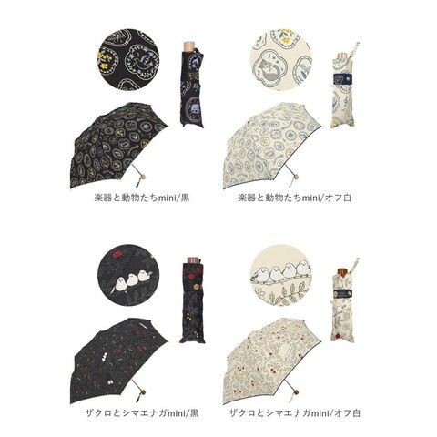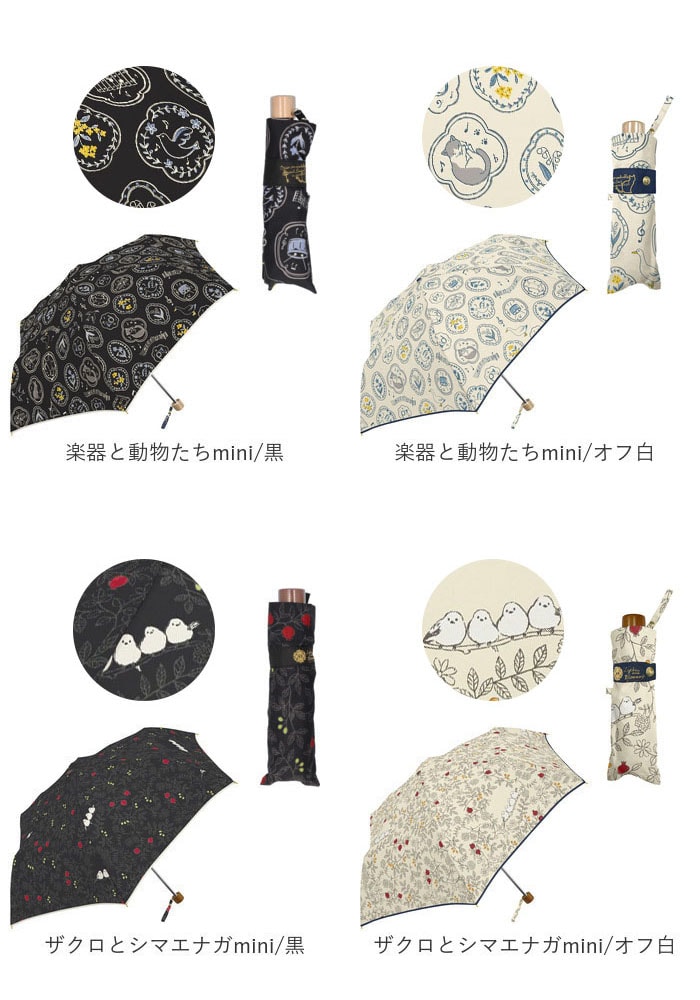 耐風 グラスファイバー 折りたたみ傘 55cm【ザクロとシマエナガmini/黒】