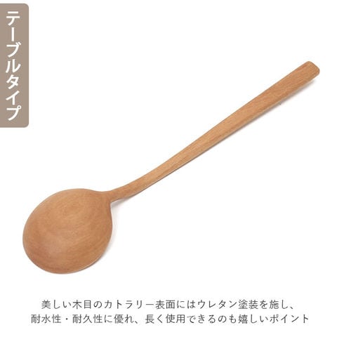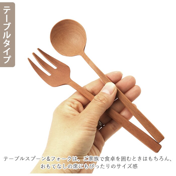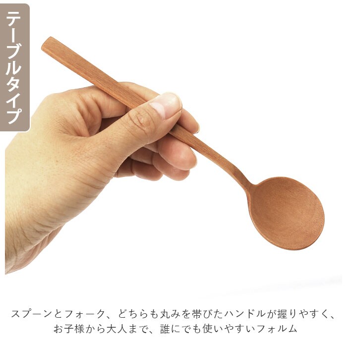 | 商品説明 | 毎日の食卓を、優しさと柔らかさで包み込む・・・。木の温もりが優しい「ナチュレ・カトラリーシリーズ」のスプーン&フォーク。ナチュラルな風合いがお料理を引き立てるテーブルタイプに、おうちカフェタイムが楽しめるデザートタイプ。お好みのスプーン&フォークがオトクな2点セットに。「ナチュレ」は、赤ちゃんのほっぺを撫でている感覚を目指して、ひとつひとつ手作業でつくられた、木のカトラリーシリーズ。インドネシアで広く食べられている「サオの木」という果物の木を素材に使用し、童話の世界に登場する食器のような、ほっこりと可愛らしい形にデザイン。細身で繊細なカトラリーの造形は、目の細かさと硬さが特徴的な「サオの木」ならではのもの。スプーンとフォーク、どちらも丸みを帯びたハンドルが握りやすく、お子様から大人まで、誰にでも使いやすいフォルム。フォークの刃先やスプーンのフチは柔らかく面が取られていて、口当たりも滑らか。美しい木目のカトラリー表面にはウレタン塗装を施し、耐水性・耐久性に優れ、長く使用できるのも嬉しいポイント。熱を伝えにくい天然木素材なので、小さなお子様のお口やお肌にもとっても優しい◎テーブルスプーン&フォークは、ご家族で食卓を囲むときはもちろん、おもてなしの席にもぴったりのサイズ感。小ぶりなデザートスプーン&フォークは、お子さまのおやつの時間や大人のティータイムにオススメ。 |