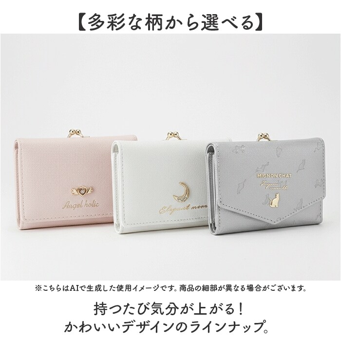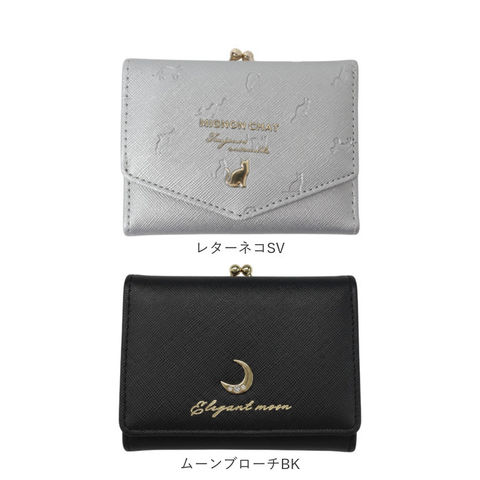 レディースがま口コンパクト財布【ムーンブローチBK】