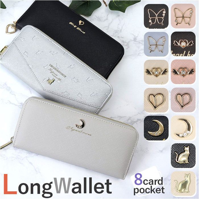 | 商品説明 | 【可愛さ満載の長財布】キュートなモチーフで毎日が楽しくなる長財布。【現金もカードも入る】フリーポケット・ファスナー式の小銭入れ・カードポケット。大容量設計で現金派も安心。【たっぷり収納力】カードを8枚収納可能。必要なカード類をすっきり整理◎【2タイプのバッグデザイン】後ろ側はフリーポケット付きとすっきりタイプの2パターン。※猫、蝶々、エンジェルハートが後ろにポケット付きです。【大人な仕上がり】PUレザー素材を使用。本革のようなお手入れ不要で、気軽に使えるのが嬉しい♪【ときめくデザイン】ハートや三日月、蝶、猫のシルエットが散りばめられた遊び心あふれる華やかさ。多彩な色から自分らしさを選べる◎ |