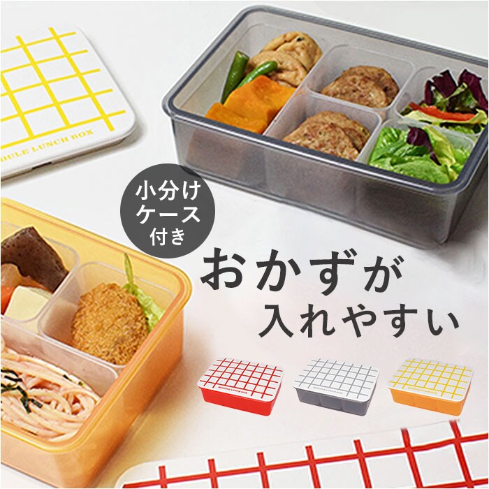 | 商品説明 | 【つくりおき弁当でラクラク時短】お弁当用冷凍食品がピッタリ入る☆「MODULE LUNCH BOX GRID L」。【毎日のお弁当作りをサポート】小分けの仕切容器が4つ付属!お弁当用冷凍食品がフィットし、パパっと詰めて準備時間を短縮。(※)大200ml・小100mlが2つずつ、合計4つの仕切容器が付属しています。【つくりおきを冷凍&冷蔵保存】ごはんやおかずを詰めておいて、冷凍や冷蔵保存。朝は冷蔵庫から出して持って行くだけ☆【しっかり食べたいOLさんに最適】片手で持ちやすく、屋外でのお食事にも便利な1段式。程よく入る容量600mlサイズ。【レンジ対応!熱々ごはんが復活】電子レンジでの温めが可能。オフィスなどでも温かいランチを楽しめる!【食洗機が使えてお手入れラクラク】食洗機にも対応。お手入れしやすく、忙しい毎日の味方。【おかずの小分け保存にもおすすめ】仕切りに作り置きを入れて、お手持ちの容器で保存。仕切容器ごと出して詰められて便利。【お気に入りを選べるカラー】年代問わず使いやすいデザインに、柔らかなカラーリング。安心の日本製。 |