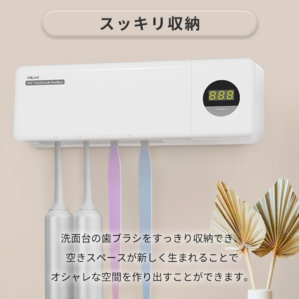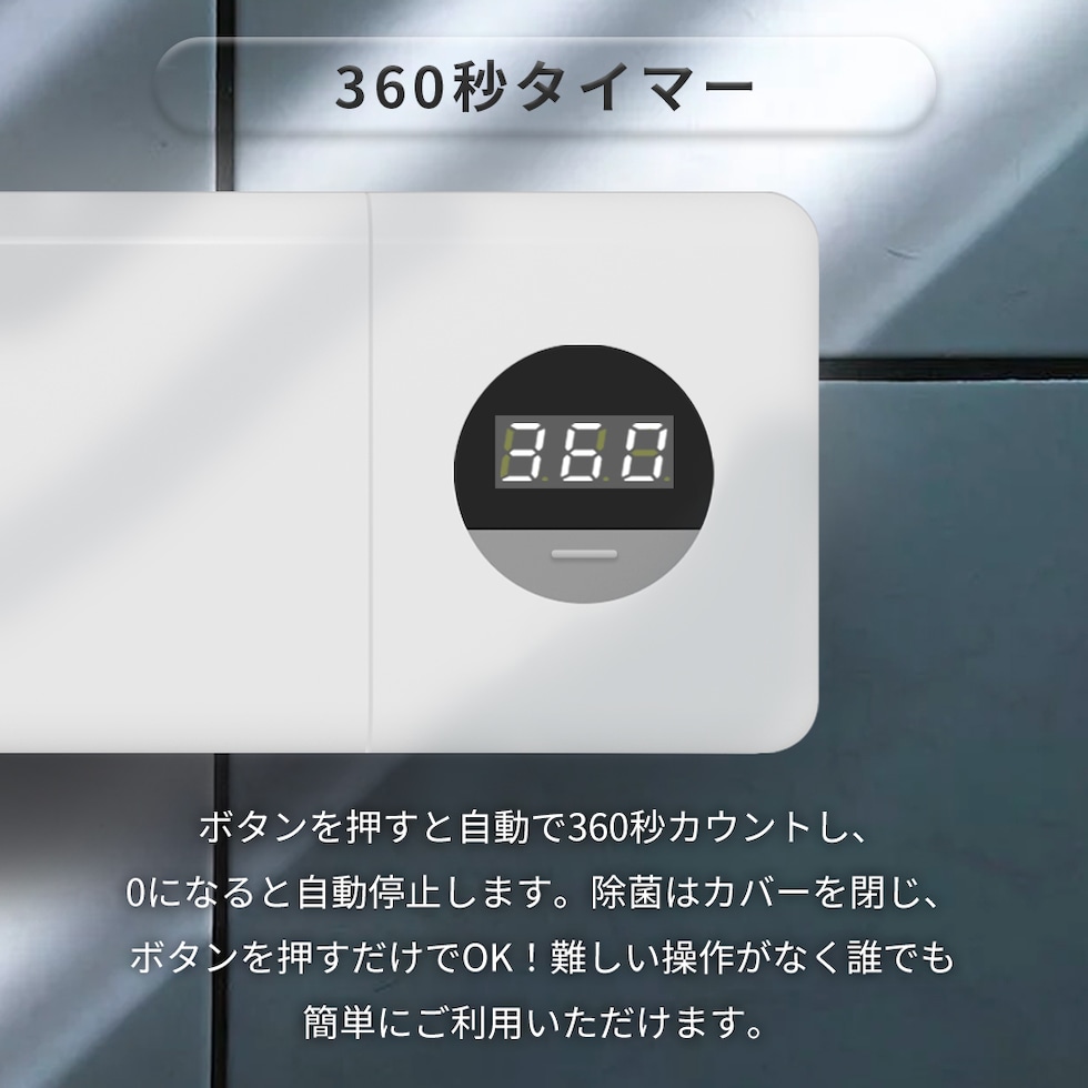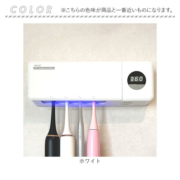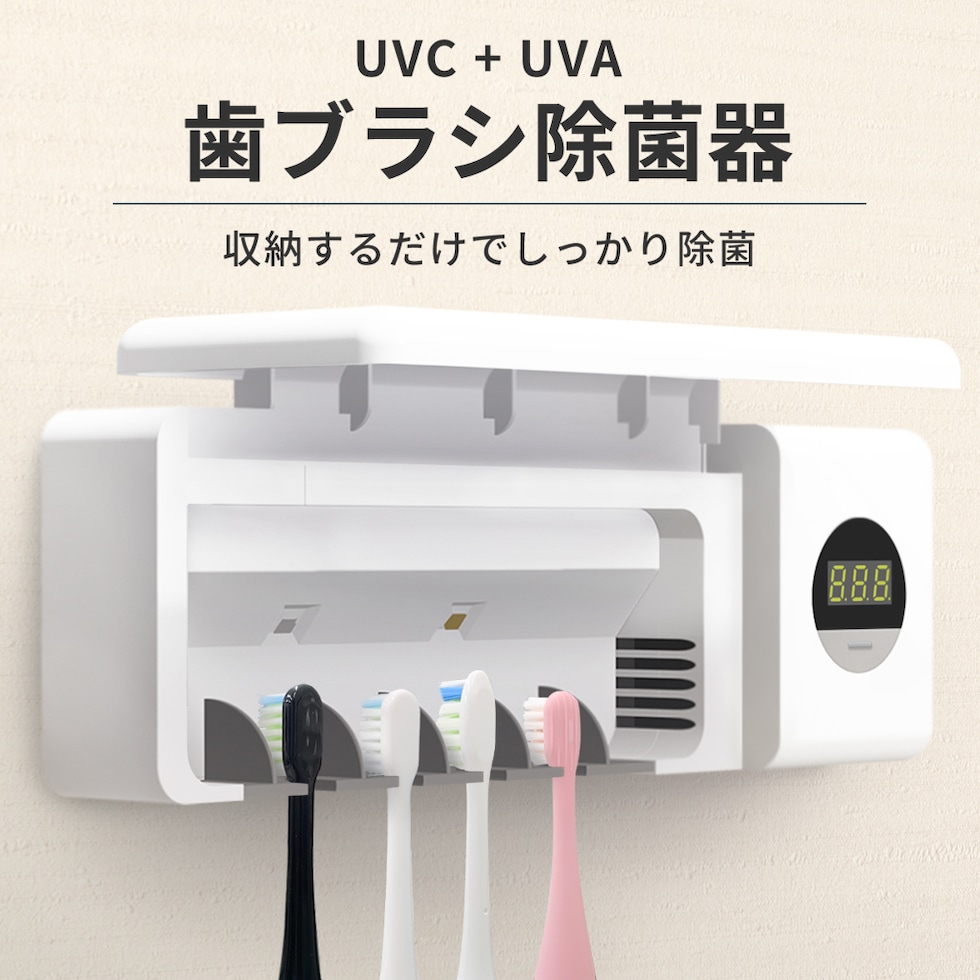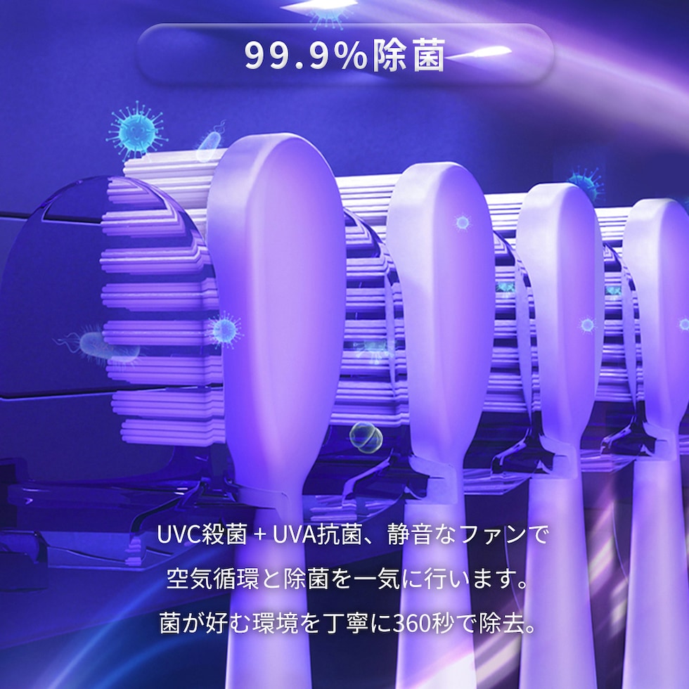 | 商品説明 | 【 収納するだけで歯ブラシケア 】1週間使用した歯ブラシには約4,000万個の菌がいるそう。その菌を短時間で解決できたら…そんな悩みを1台で解決!【 99.9%殺菌の徹底した除菌力 】UVC殺菌+UVA抗菌、静音なファンで空気循環と除菌を一気に行う。歯ブラシをホルダーにセットし、カバーを閉めてスイッチボタンを押すだけでOK!【 ひと目で分かるデジタル表示 便利な360秒間のオートタイマー 】ボタンを押すと自動で360秒のカウントが始まり、「0」になると自動停止。除菌状態でカバーを開けると一時停止、再度閉めると経過時間からカウント開始。【 思いやりのデザイン 様々な壁面に対応する壁掛け式 】家族みんなが使用できる、思いやりの4つホルダー付きのデザイン。タイル・パネル・浴室ミラー等、付属の強力3Mテープでしっかり取り付け可能。【 1回の充電で30回使える 安心のバッテリー性能 】長時間使える大容量のバッテリー性能で、1回のフル充電で30回使用可能。充電しながらの使用も可能なUSBポートを搭載し、見た目もスッキリ! |