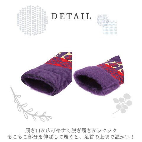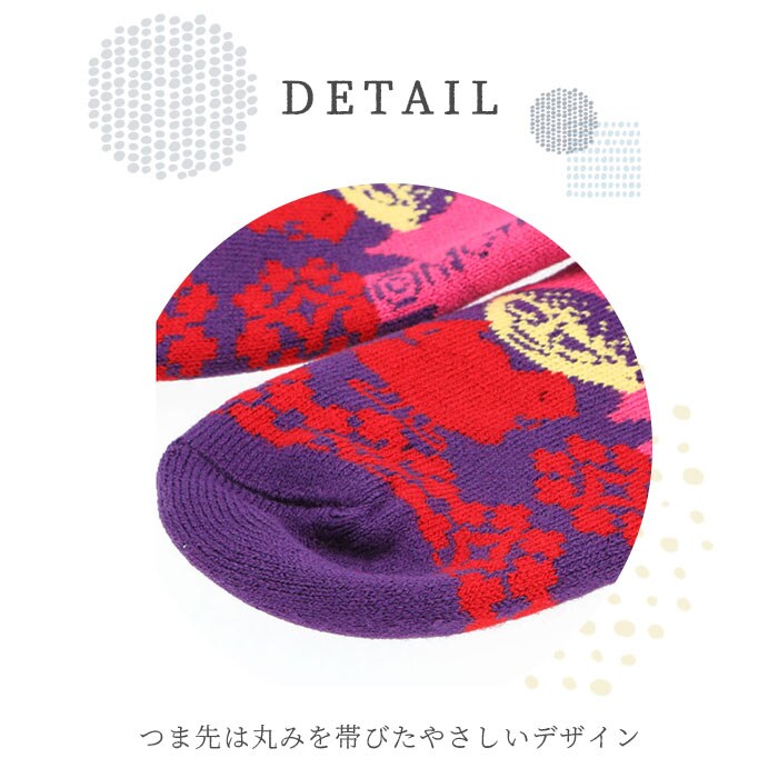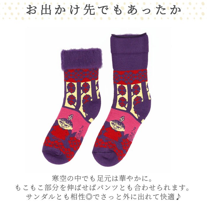| 商品説明 | ふかふかで柔らかく、足元が包まれているような感覚♪TOIVO(トイヴォ)もこもこソックス(レディース用)に可愛いムーミンデザインが新登場!寒さの厳しいフィンランドや北極圏でも愛用される、もこもこソックス。フィンランド国内で靴下職人によって丁寧に作られた、安全性と信頼性の高いアイテム。吸汗・吸湿する糸を使い3重構造で編み上げているので、冷気を感じにくい。蒸れにくく優れた保湿性があるので、足元を温かく快適に保ってくれる◎履き口が広げやすく脱ぎ履きがラクラク。もこもこ部分を伸ばして履くと、足首の上まで温かい!カラフルで遊び心溢れるデザインなので、寒い冬も楽しい気持ちになれそう♪ |