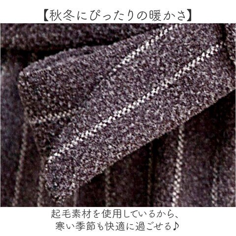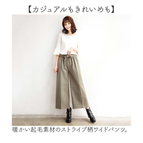 | 商品説明 | 【カジュアルもきれいめも】暖かい起毛素材のストライプ柄ワイドパンツ。【ワイドシルエットですっきり】ゆったりとしたシルエットで脚のラインをカバーし、すらりと見えるデザイン◎【秋冬にぴったりの暖かさ】起毛素材を使用しているから、寒い季節も快適に過ごせる♪【楽ちんウエストゴム仕様】ウエストゴムとリボンベルト付きで、着脱も簡単なストレスフリーな履き心地!【洗練されたストライプデザイン】縦ラインを強調するデザインで、きちんと感のある大人の着こなしが完成する上品さ〇【コーディネートしやすさ抜群】トップスを選ばないシンプルなデザインで、手持ちの服と合わせやすい万能アイテム。 |
