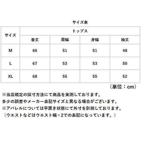| サイズ | [レディース] ・Mサイズ ・Lサイズ ・XLサイズ ※サイズについて詳細は、商品画像の中にあるサイズ表をご覧くださいませ。 |