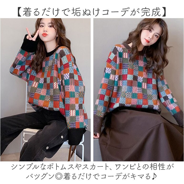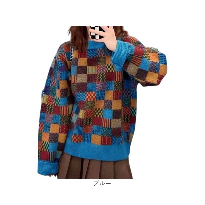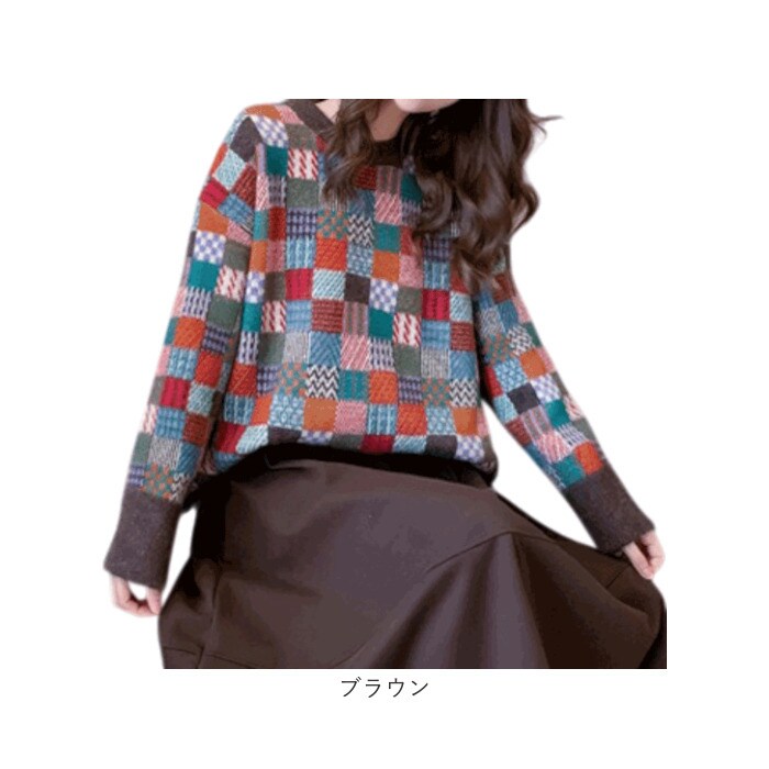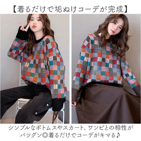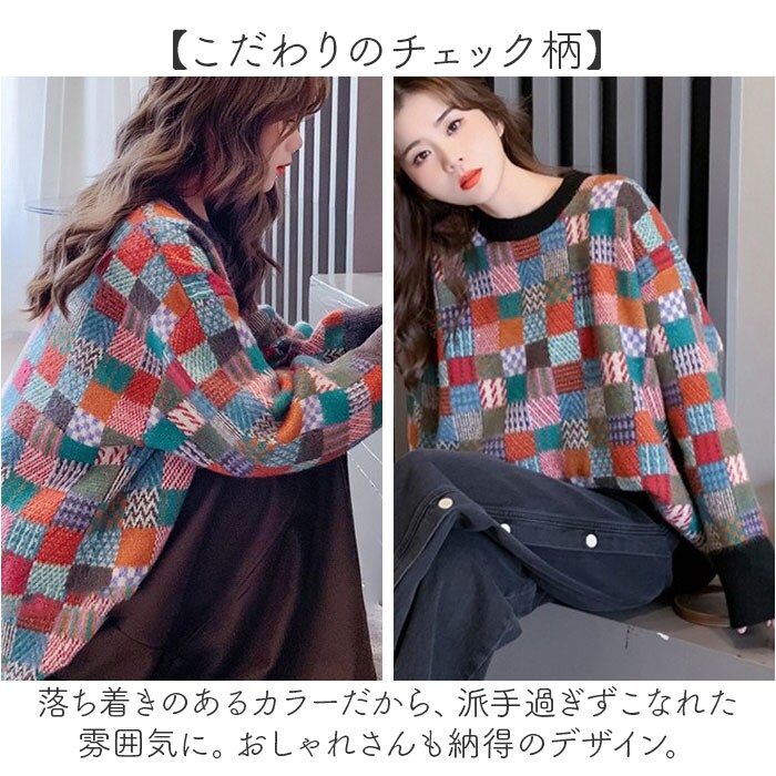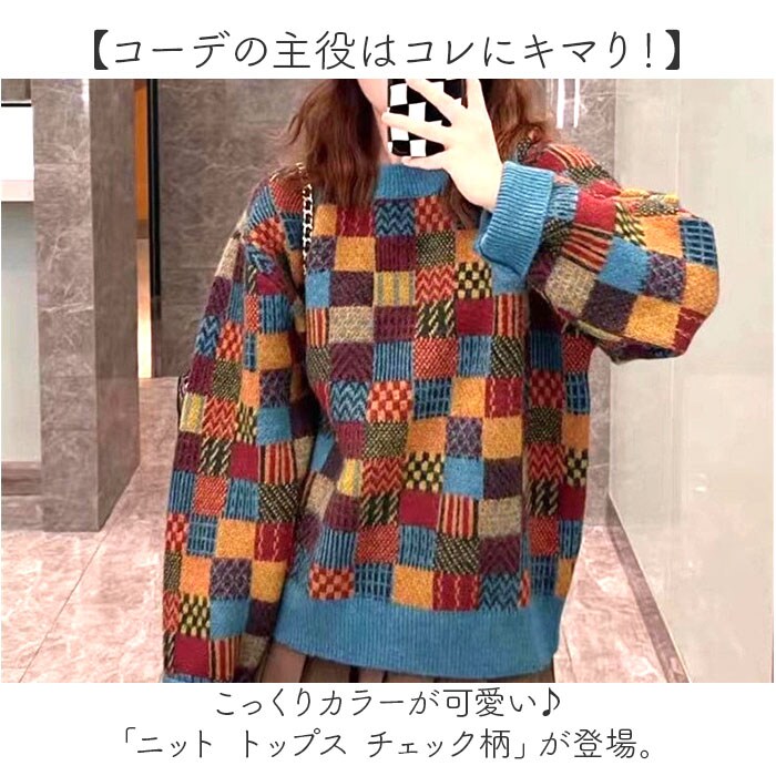 | 商品名 | ニット トップス チェック柄 |
