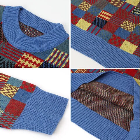 ニット トップス チェック柄【ブルー】