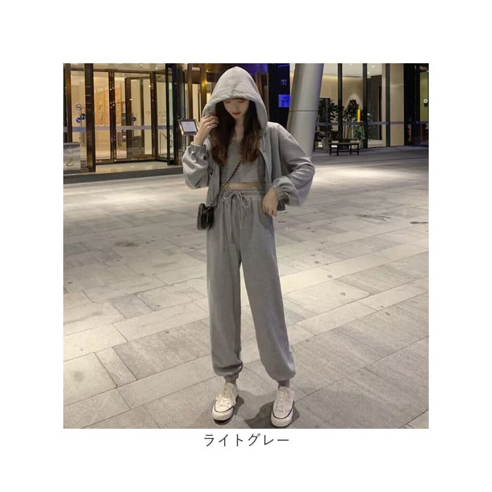 ジャージセットアップ フード付き 3点セット mm3sets30h【ライトグレー】【Mサイズ】
