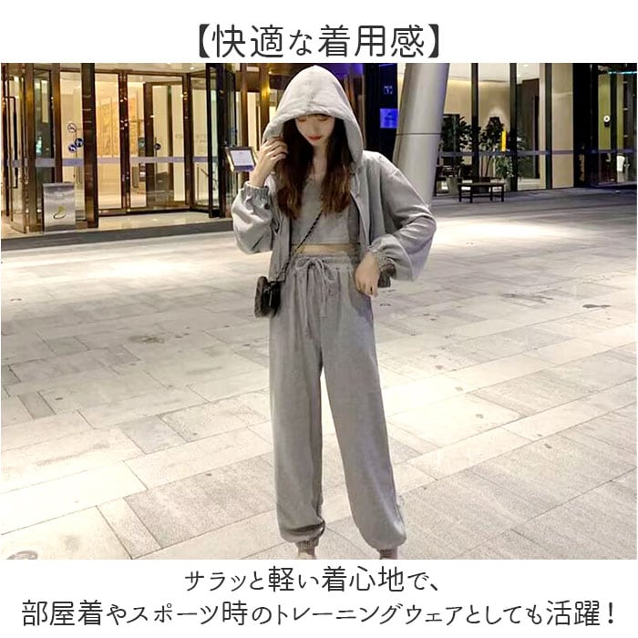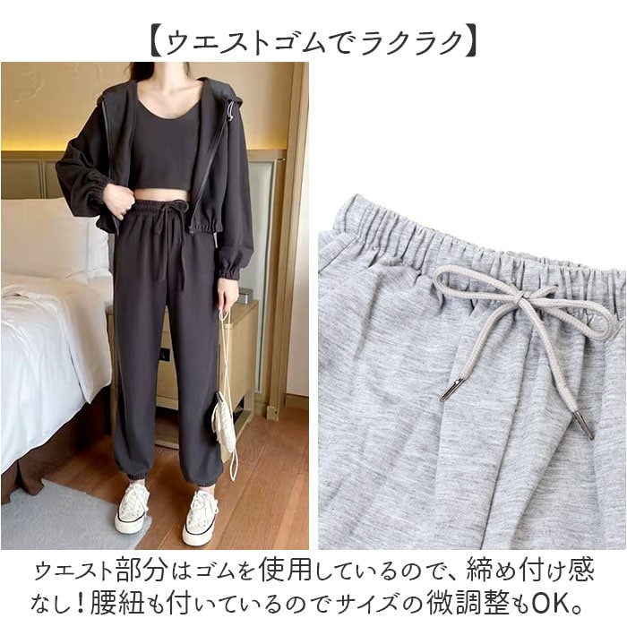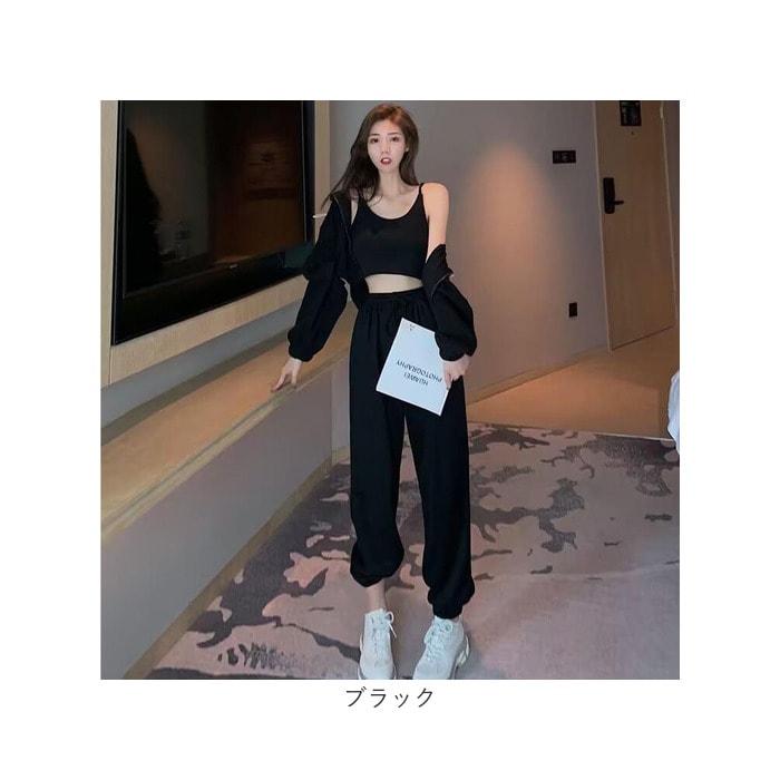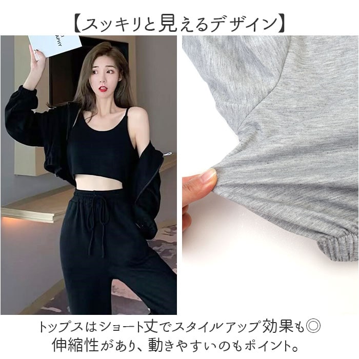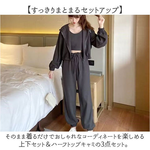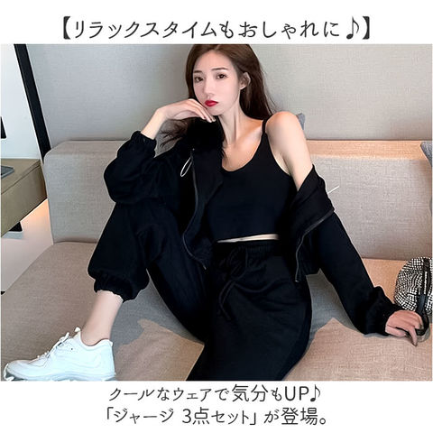| 商品説明 | 【リラックスタイムもおしゃれに♪】クールなウェアで気分もUP♪「ジャージ 3点セット」が登場。【すっきりまとまるセットアップ】そのまま着るだけでおしゃれなコーディネートを楽しめる上下セット&ハーフトップキャミの3点セット。【スッキリと見えるデザイン】トップスはショート丈でスタイルアップ効果も◎伸縮性があり、動きやすいのもポイント。【ウエストゴムでラクラク】ウエスト部分はゴムを使用しているので、締め付け感なし!腰紐も付いているのでサイズの微調整もOK。【便利なポケット】パンツの両サイドにはスマホなど小物が入れられるポケット付き。【快適な着用感】サラッと軽い着心地で、部屋着やスポーツ時のトレーニングウェアとしても活躍! |