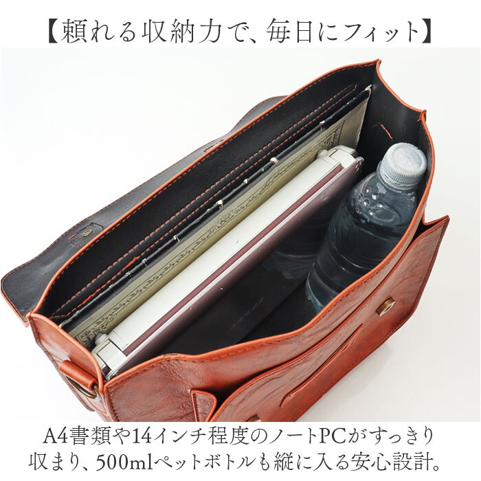 | 商品説明 | 【日常を少しだけクラシカルに彩る】ほんのりレトロ、だけどちゃんと今っぽい♪「3wayバッグ レトロ スクール」が登場。【上品なレトロ感が漂う佇まい】アンティークゴールドの金具がアクセント。大人の装いにもマッチするクラシカルな雰囲気。【頼れる収納力で、毎日にフィット】・A4書類や14インチ程度のノートPCがすっきり収まり、500mlペットボトルも縦に入る安心設計。【サッと取り出せるフロントポケット】スマホや定期券を入れてもすぐに手が届く、便利なオープンポケット付き。【軽やかで手入れも簡単な合皮素材】柔らかくて軽い合皮素材。汚れに強く、毎日使っても疲れにくい頼れる質感。【毎日にちょうどいい上品さ】きちんと見えするのに、気取らない。通勤や通学、お出かけにもフィットする万能デザイン。 |