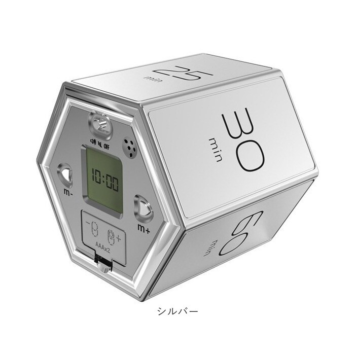 六角形タイマー 時間管理 勉強 キッチン【シルバー】