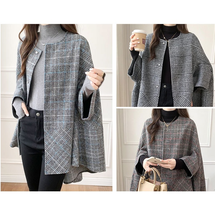| 商品名 | ポンチョ風ジャケット アウター チェック柄 |