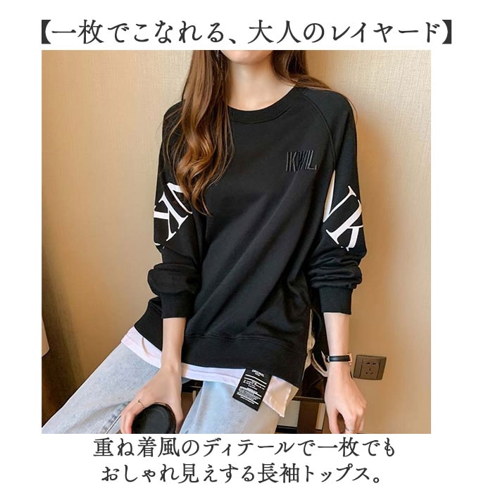 | 商品説明 | 【一枚でこなれる、大人のレイヤード】重ね着風のディテールで一枚でもおしゃれ見えする長袖トップス。【大人カジュアルスタイル】ゆったりシルエットが抜け感を演出する万能アイテム。【時短コーデの味方】忙しい朝もさっと着るだけで完成するレイヤード風コーデ。【ロング丈シルエット】腰回りを自然にカバーしてくれる安心感のある丈で綺麗なシルエットを実現。【ロゴデザインのアクセント】胸元のロゴがコーデに程よい抜け感と存在感をプラス☆ |