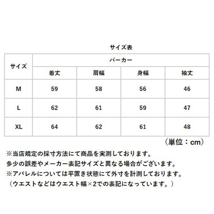 | サイズ | [レディース] ・Mサイズ ・Lサイズ ・XLサイズ ※サイズについて詳細は、商品画像の中にあるサイズ表をご覧くださいませ。 |