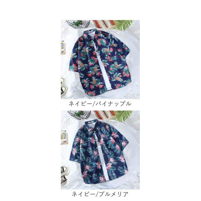 アロハシャツ トップス 半袖【ネイビー/プルメリア】【Lサイズ】