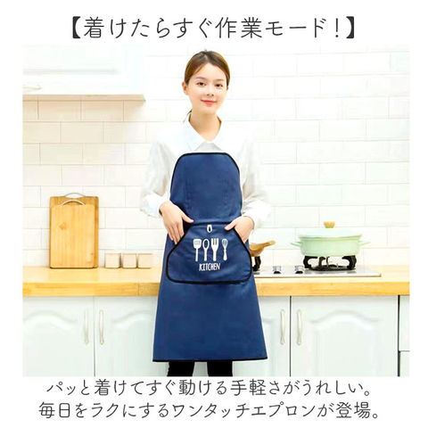 ワンタッチエプロン 時短 軽量【ネイビー】