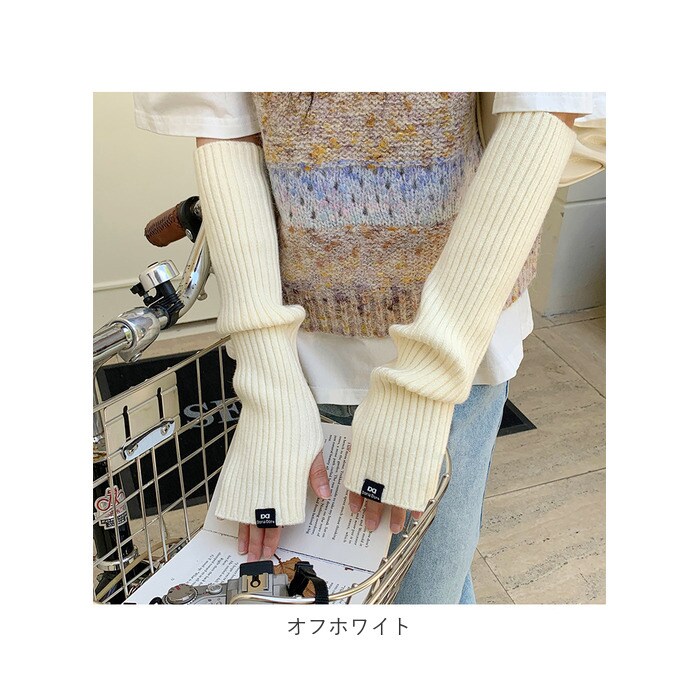 アームウォーマー 暖かい ロング mmarmw111e【オフホワイト】