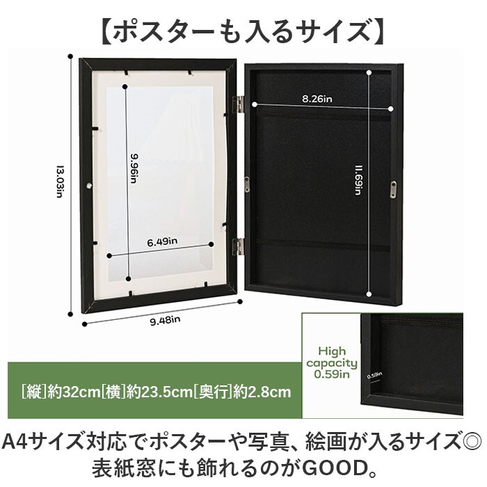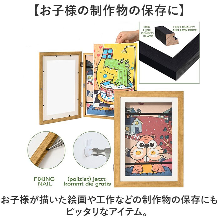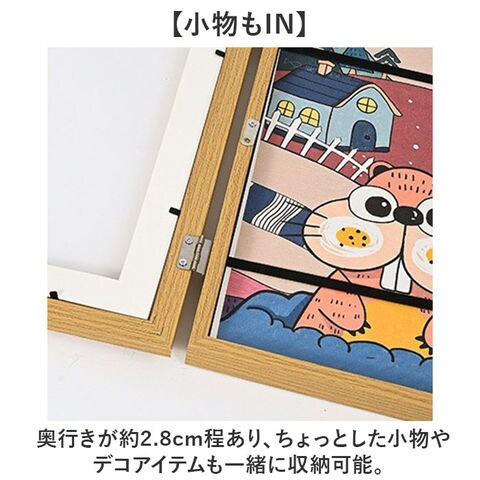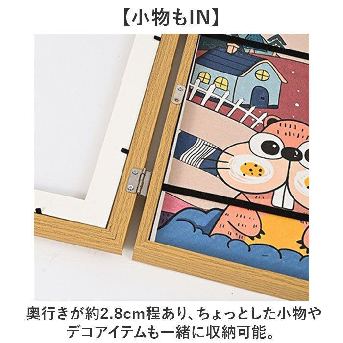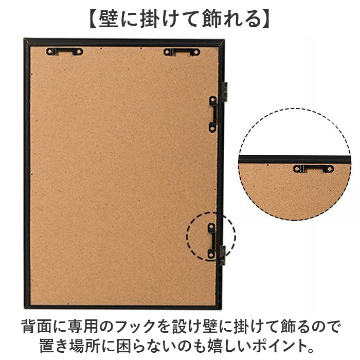 | 商品説明 | 【絵や小物も飾れる】絵や写真はもちろん、小物も一緒に入れて飾れるアートフレームディスプレイが新発売。【ポスターも入るサイズ】A4サイズ対応でポスターや写真、絵画が入るサイズ◎表紙窓にも飾れるのがGOOD。【小物もIN】奥行きが約2.8cm程あり、ちょっとした小物やデコアイテムも一緒に収納可能。【お子様の制作物の保存に】お子様が描いた絵画や工作などの制作物の保存にもピッタリなアイテム。【ウェルカムボードにも】カリグラフィーカードを入れてウェディングやお店のウェルカムボードに。【壁に掛けて飾れる】背面に専用のフックを設け壁に掛けて飾るので置き場所に困らないのも嬉しいポイント。 |