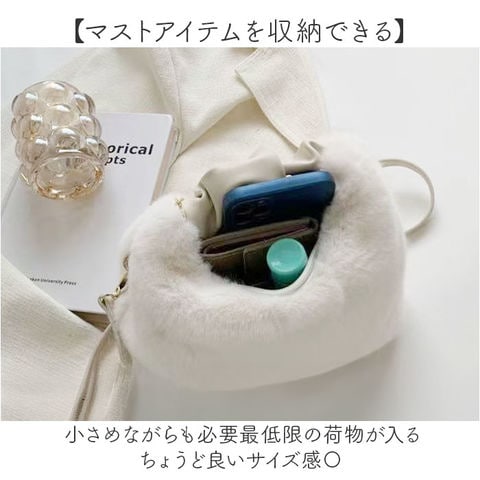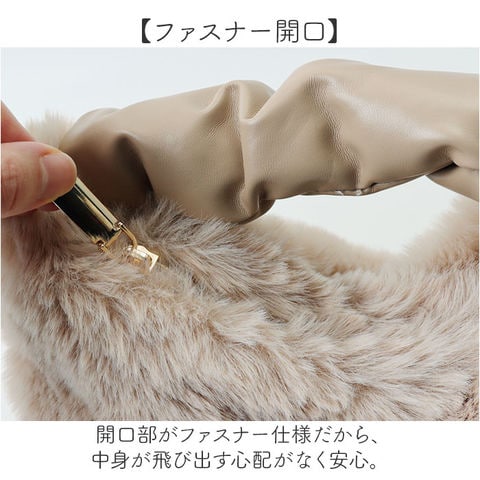 | 商品説明 | 【大人可愛いを叶える冬バッグ】 ふわふわもこもこの2way仕様ファーバッグ♪【便利な2way】手持ちはもちろん、長さ調節可能なショルダーベルトをつけて斜めがけ、肩掛け、その日の気分に合わせて使い分け可能◎【マストアイテムを収納できる】 小さめながらも必要最低限の荷物が入るちょうど良いサイズ感〇【ファスナー開口】 開口部がファスナー仕様だから、中身が飛び出す心配がなく安心。【秋冬コーデを彩るデザイン】手触りのよい、 ふわもこの愛らしいファーが季節感のあるスタイリングに! |