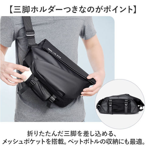| 商品説明 | 【三脚ホルダーつき☆】4つの収納ルームで小物を仕分け!「ボディーバッグ ショルダー」が登場。【普段使いも、カメラ収納も叶える◎】メインはしっかりマチがあり、幅のある大型タイプカメラも収納できる。もちろん普段使いも◎【三脚ホルダーつきなのがポイント】折りたたんだ三脚を差し込める、メッシュポケットを搭載。ペットボトルの収納にも最適。【タブレットの持ち運びが可能】フロントポケットにはクッションをIN。タブレットなどの機器の持ち運びも安心。【ななめファスナーがアクセント】フロントには、ななめにデザインしたファスナーポケットを搭載。ちょっとだけ遊び心を表現。【次世代マグネットバックル】カチッと一瞬でつけられる、マグネットタイプのバックル。使いやすさが自慢。【撥水生地で荷物が濡れにくい】突然の雨から荷物を守る、撥水加工生地。汚れにも強い。※完全防水ではありません。【ポケット仕様】フロント:ファスナーポケット×2メイン収納:オープンポケット×3(内1つクッションポケット)背面:ファスナーポケット×1底部:メッシュオープンポケット×1 |