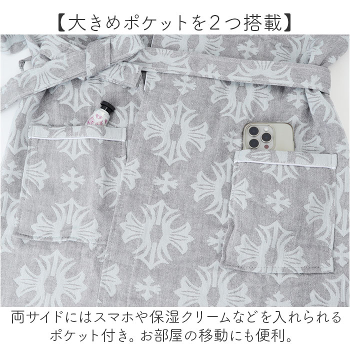 バスローブ ガウン ルームウェア【グレー】【Mサイズ】
