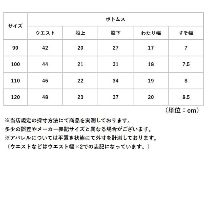 | サイズ | [キッズ] ・90cm ・100cm ・110cm ・120cm ※サイズについて詳細は、商品画像の中にあるサイズ表をご覧くださいませ。 |