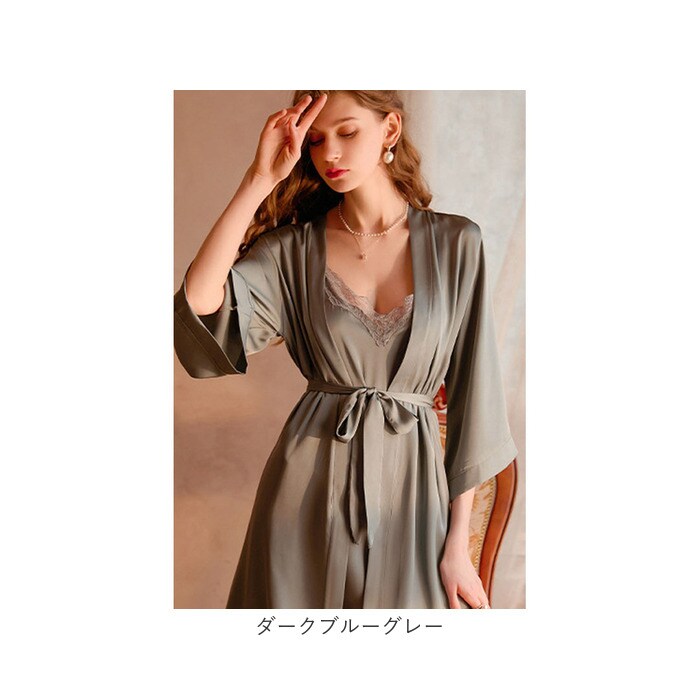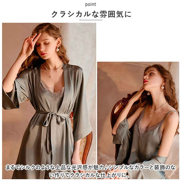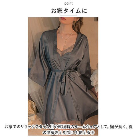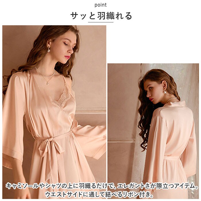 | 商品説明 | 程よい光沢感が上品なガウンが新発売♪【クラシカルな雰囲気に】まるでシルクのような上品な光沢感が魅力♪シンプルなカラーと装飾のない作りでクラシカルな仕上がりに。【サッと羽織れる】キャミソールやシャツの上に羽織るだけで、エレガントさが際立つアイテム。ウエストサイドに通して結べるリボン付き。【お家タイムに】お家でのリラックスタイム用や就寝時のルームウェアとして。裾が長く、夏の冷房冷え対策にも使える◎【ポケット付き】スマホやヘアゴム等、ちょっと小物を入れておきたいときに便利なサイドポケット付き。 |