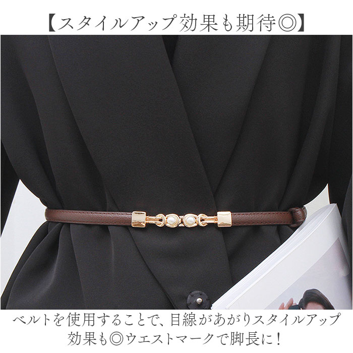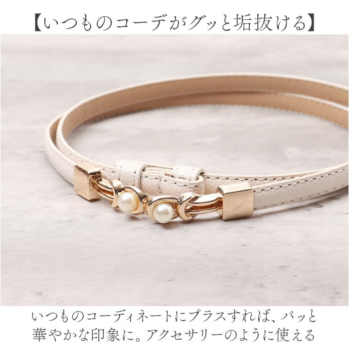| 商品説明 | 【ファッションのアクセントに♪】パンツにもスカートにもワンピにもマッチする、万能デザイン☆「細ベルト」が登場。【いつものコーデがグッと垢抜ける】いつものコーディネートにプラスすれば、パッと華やかな印象に。アクセサリーのように使える【スタイルアップ効果も期待◎】ベルトを使用することで、目線があがりスタイルアップ効果も◎ウエストマークで脚長に!【ベルト穴なしなのにサイズフリー!】後のループ部分を調節すれば自分にぴったりのサイズに。ベルト穴無しでスタイリッシュ!【イミテーションパールがポイント】落ち着きのあるレザー調のベルトに、ゴールドパーツの組み合わせ。パール調がキラッと輝く☆【いつでも使える万能アイテム】キレイめのお洋服はもちろん、カジュアルデニムにもマッチ。休日も出勤もOKで大活躍! |