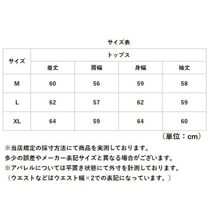| サイズ | [レディース] ・Mサイズ ・Lサイズ ・XLサイズ ※サイズについて詳細は、商品画像の中にあるサイズ表をご覧くださいませ。 |