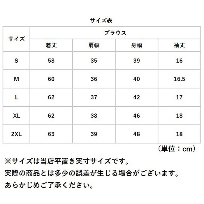 | サイズ | [レディース] ・Sサイズ ・Mサイズ ・Lサイズ ・XLサイズ ・2XLサイズ ※サイズについて詳細は、商品画像の中にあるサイズ表をご覧くださいませ。 |