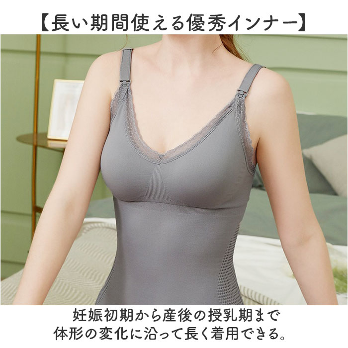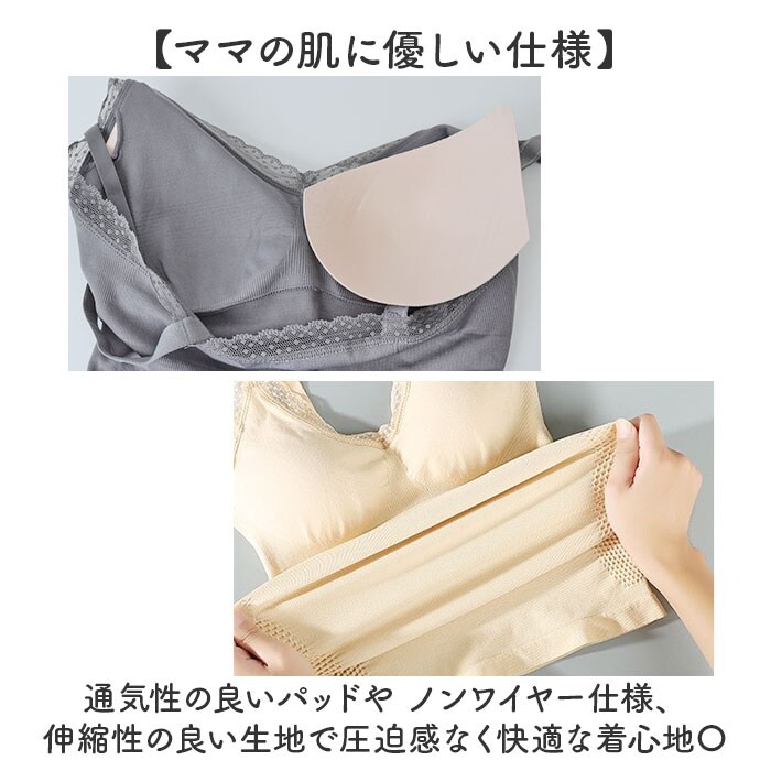 商品説明【ママに嬉しい機能付き】授乳をもっと楽にする、ブラトップキャミソール♪【ワンロック開閉】ストラップオープンタイプだから、赤ちゃんを待たせず、らくらく授乳できる◎【腰を優しくサポート】 産後の気になるボディラインを無理なく整えるコルセット機能付き。【ママの肌に優しい仕様】通気性の良いパッドや ノンワイヤー仕様、伸縮性の良い生地で圧迫感なく快適な着心地〇【かわいい&セクシーなレース】胸元に施されたレースが気分を上げてくれる!【長い期間使える優秀インナー】 妊娠初期から産後の授乳期まで体形の変化に沿って長く着用できる。