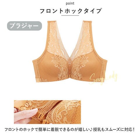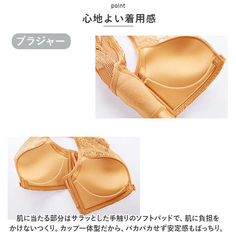 | 商品説明 | バストを心地よくホールド!きれいなシルエットを作り出すフロントホックブラと、ショーツのセットが新登場。【上品な印象を演出】透け感のあるレースデザインをプラスし、いつも可愛くいたい女性にぴったり。カラーによって異なる雰囲気もポイント。《ブラジャー》【締めつけ感のないノンワイヤータイプ】アンダー部分はノンワイヤー仕様なので、窮屈感が苦手な方におすすめ!軽やかでストレスフリー。【フロントホックタイプ】フロントのホックで簡単に着脱できるのが嬉しい♪授乳もスムーズに対応!【バストのカタチをキープ】バストをしっかり包み込む、もっちりとした立体カップ設計。程よい硬さの脇高サイドボーンが前へ押し上げ、横流れを防止。【心地よい着用感】肌に当たる部分はサラッとした手触りのソフトパッドで、肌に負担をかけないつくり。カップ一体型だから、パカパカせず安定感もばっちり。【背中もキレイ魅せ】背中すっきりV字ライン。バックスタイルも抜かりなし♪《ショーツ》【誰でも使いやすいデザイン】お尻を優しく包み込んでくれるカタチ◎クロッチ部分は安心の二重構造。【大人な仕上がり】エレガントな印象をアップさせる、全面レース仕様。食い込みを抑え、ヒップラインがボトムスに響きにくいのもポイント。 |