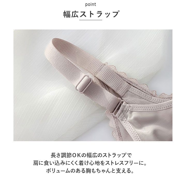 | 商品説明 | 脇高設計で胸をスッキリ見せる!大胸さんにオススメの「ブラジャー 大きいサイズ」が登場。【スッキリ見せ】脇高設計で流れやすいバストをしっかりと支え、両サイドをすっきり見せる。ワイヤー入りでしっかりホールドするので、大胸さんにおすすめのブラ。【安心の着け心地】深めのフルカップで、バストを全体をしっかり包み込む。安心の着け心地。【幅広ストラップ】長さ調節OKの幅広のストラップで、肩に食い込みにくく着け心地をストレスフリーに。ボリュームのある胸もちゃんと支える。【4段階ホック】ホックは4段階に調節が可能。フィット感をUPさせられるのも嬉しいポイント。【通気性◎】薄めの生地を使いパットも最小限に。通気性を考慮した作りで、ムレを軽減。快適な着け心地を実現。【上品なデザイン】シルクを思わせる、上品なツヤ感が魅力。シンプルだけどレース使いがGOOD。インナーから気分をUP♪【選べるカラー】落ち着きのあるカラーのラインナップ。お気に入り一着を見つけて☆ |