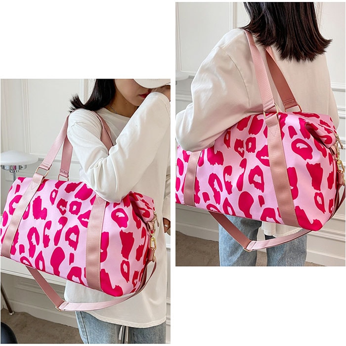 ボストンバッグ スポーツ 旅行 レオパード柄【ピンク】