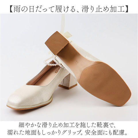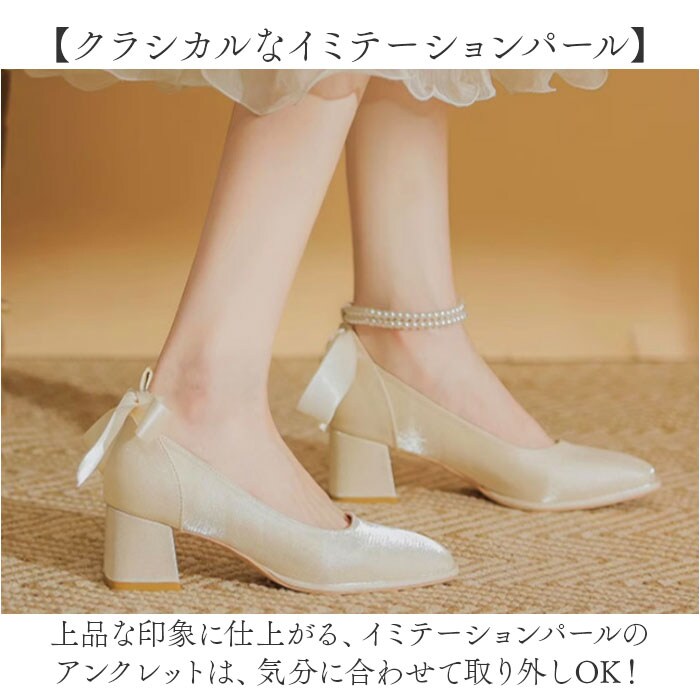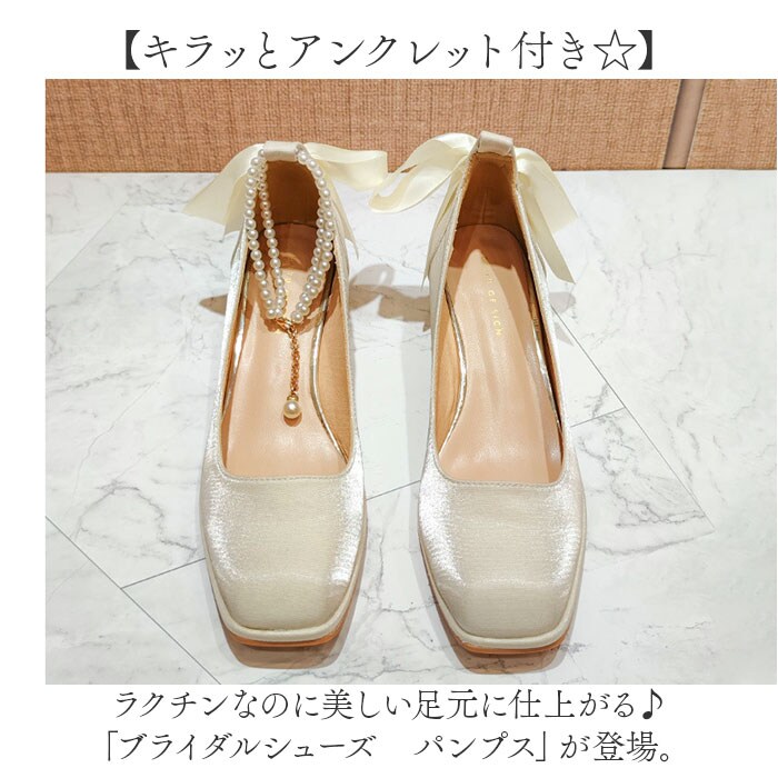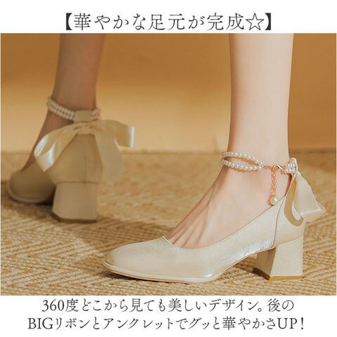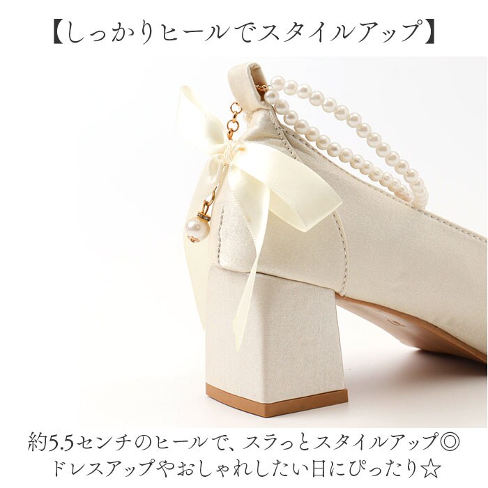 | 商品説明 | 【キラッとアンクレット付き☆】ラクチンなのに美しい足元に仕上がる♪「ブライダルシューズ パンプス」が登場。【華やかな足元が完成☆】・360度どこから見ても美しいデザイン。後のBIGリボンとアンクレットでグッと華やかさUP!【しっかりヒールでスタイルアップ】約5.5センチのヒールで、スラっとスタイルアップ◎ドレスアップやおしゃれしたい日にぴったり☆【とにかく歩きやすい太ヒール】地面をしっかり踏める、チャンキーヒールを採用。歩行が安定するから1日履いても疲れにくい◎【クラシカルなイミテーションパール】上品な印象に仕上がる、イミテーションパールのアンクレットは、気分に合わせて取り外しOK!【雨の日だって履ける、滑り止め加工】細やかな滑り止め加工を施した靴裏で、濡れた地面もしっかりグリップ。安全面にも配慮。 |