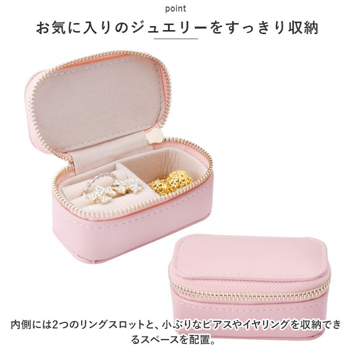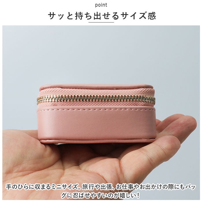 | 商品説明 | 持ち運びに便利!コンパクトなアクセサリーケースが新登場。【上品なデザイン】柔らかく滑らかな手触りのPU素材を使い、落ち着きのある雰囲気に仕上げたアクセサリーケース。シンプルで年代問わず使いやすいのがポイント。【ラウンドファスナー開口】開口部はぐるっと180度オープン!中身が見やすく、取り出しもラクラク。【お気に入りのジュエリーをすっきり収納】内側には2つのリングスロットと、小ぶりなピアスやイヤリングを収納できるスペースを配置。【傷付きを防止】柔らかな素材の内張り仕様。大切なアクセサリーを傷や衝撃からガード◎【サッと持ち出せるサイズ感】手のひらに収まるミニサイズ。旅行や出張、お仕事やお出かけの際にもバッグに忍ばせやすいのが嬉しい!【撥水性をプラス】表面に汚れや水をはじく撥水加工済み。お手入れも拭き取るだけ。(※完全防水ではありません。濡れた場合はすぐに拭き取ってください。)【選べるカラー】優しい色合いで気品のあるバリエーション。お好みに合わせてチョイスして♪ |