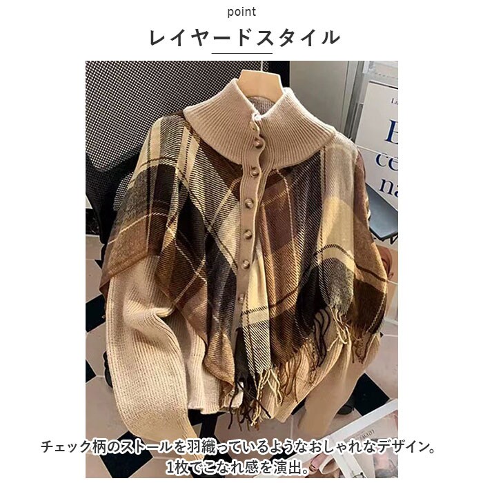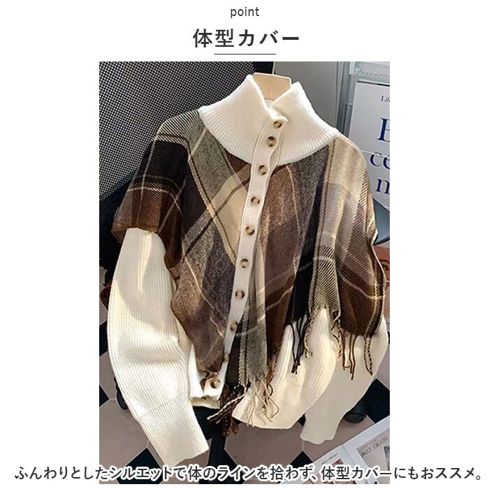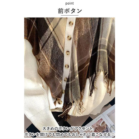 | 商品説明 | ストールを重ねたような存在感たっぷりのニットカーディガンが発売。【レイヤードスタイル】チェック柄のストールを羽織っているようなおしゃれなデザイン。1枚でこなれ感を演出。【体型カバー】ふんわりとしたシルエットで体のラインを拾わず、体型カバーにもおススメ。【ハイネック】ハイネックタイプなので、首元がスッキリ見えるのも嬉しいポイント。【前ボタン】大きめのボタンがアクセント。ボタンを開けても閉めてもおしゃれに着こなせる◎【ベーシックカラー】ベーシックなカラー展開で、幅広いコーディネートに対応。 |